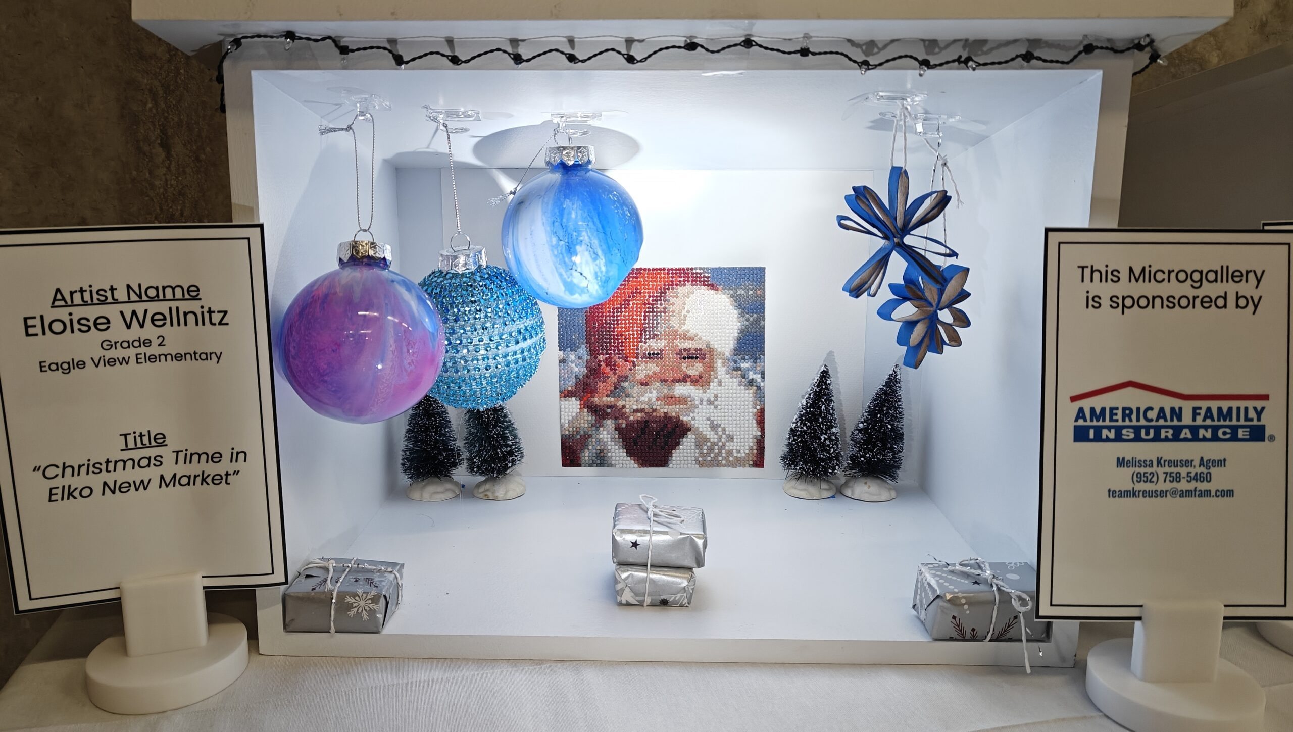 We had an absolutely amazing line up of student art work for our second annual Microgallery, unveiled at the ENM Tree Lighting Ceremony. Thank you so much to our sponsors, our artists and everyone who came out to support these young artists. The Microgallery boxes will be on display at the Elko New Market Library through December!